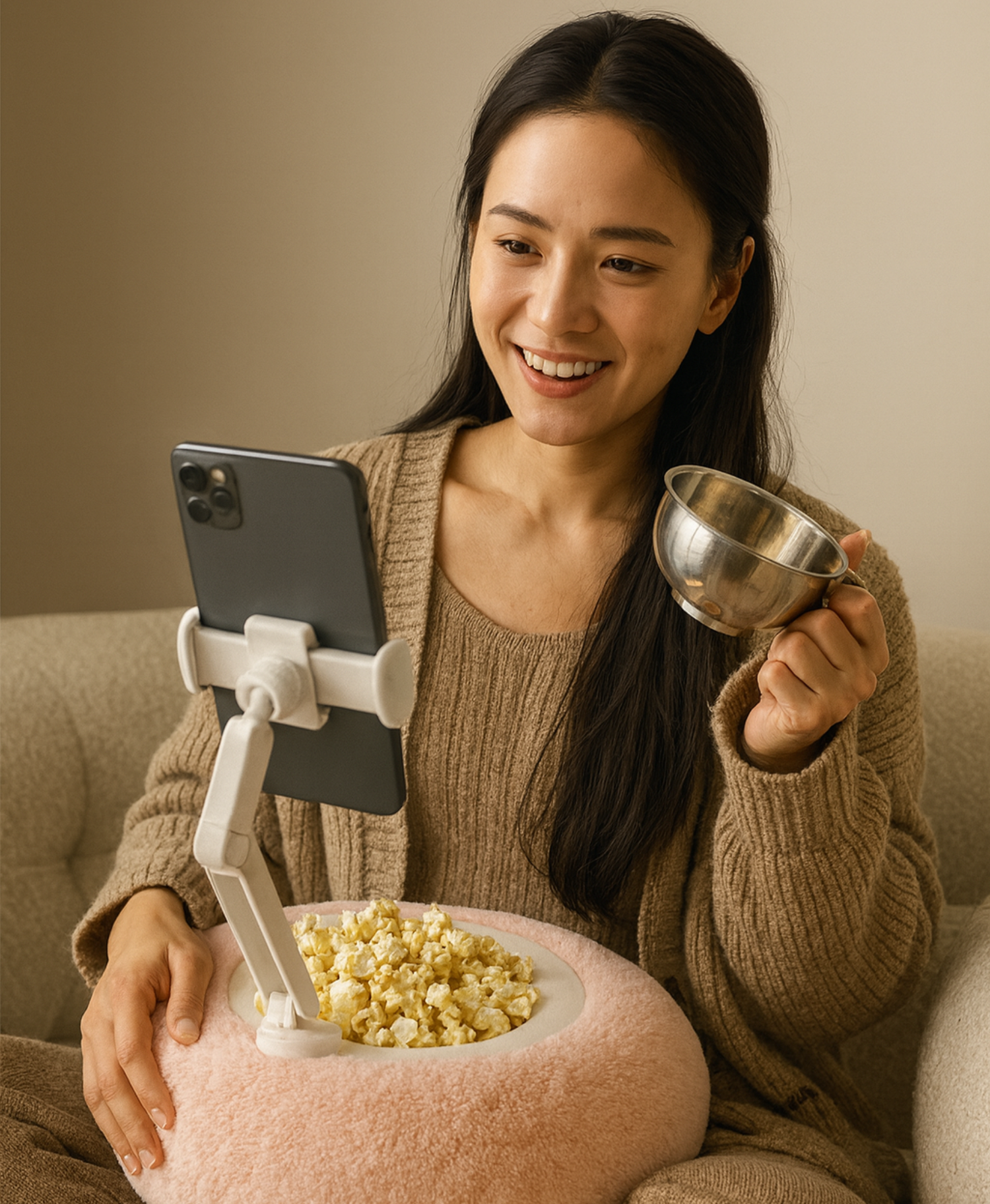 Un support moelleux, élégant et stable, pensé pour tes moments de bien-être : regarder, manger, appeler ou créer sans jamais avoir à le tenir.